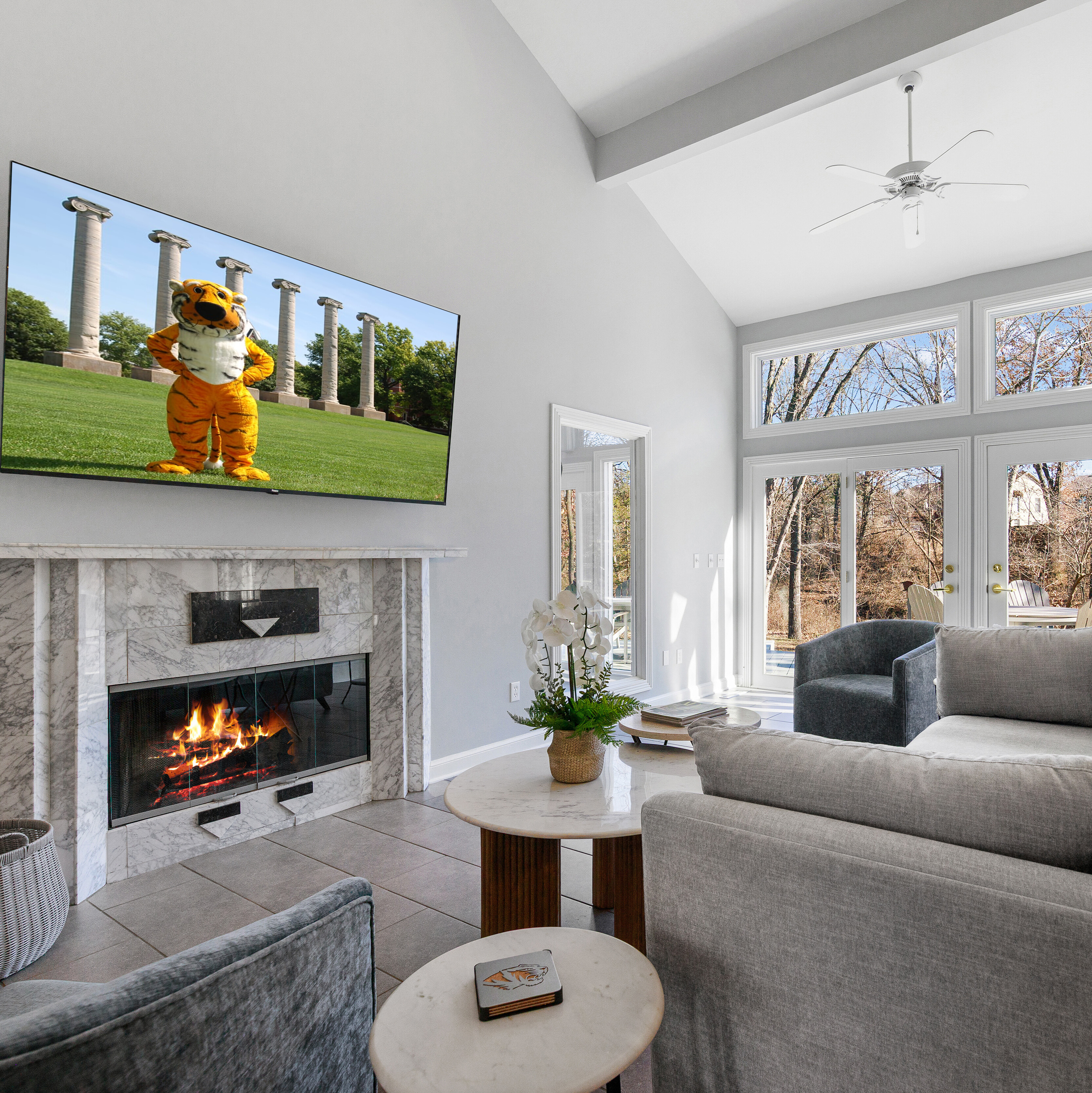 This modern, amenity-packed Columbia, MO vacation home is just 10 minutes from Mizzou and downtown, and it’s built for easy, fun weekends together. We’re especially excited about the game lounge and outdoor deck — they’re the kind of spaces where everyone naturally ends up hanging out and making memories.